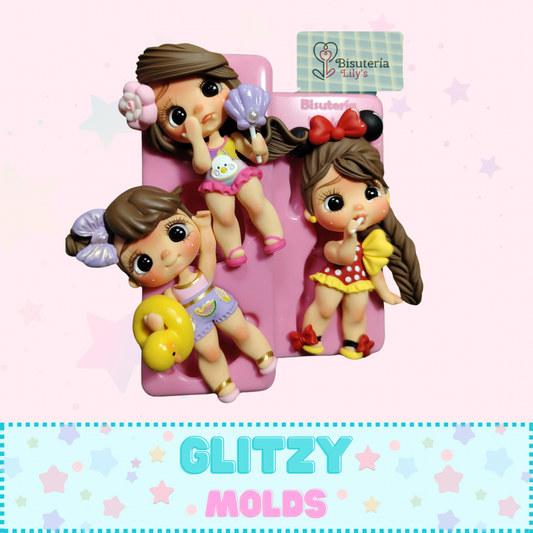 Triplets Mold, Doll Applique Silicone Mold, Bisutería Lily's BL-Triplets-170