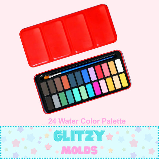 24 Colors Solid Watercolor Paint Set, Red Iron Box, Portable