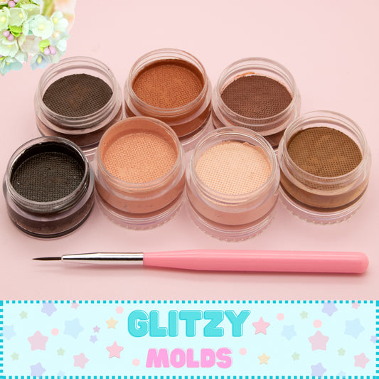 Flesh Shades Set, Gel Color Pigments for Cold Porcelain by Glitzy Molds, 6 Color options, 1 oz per Color