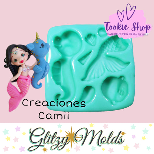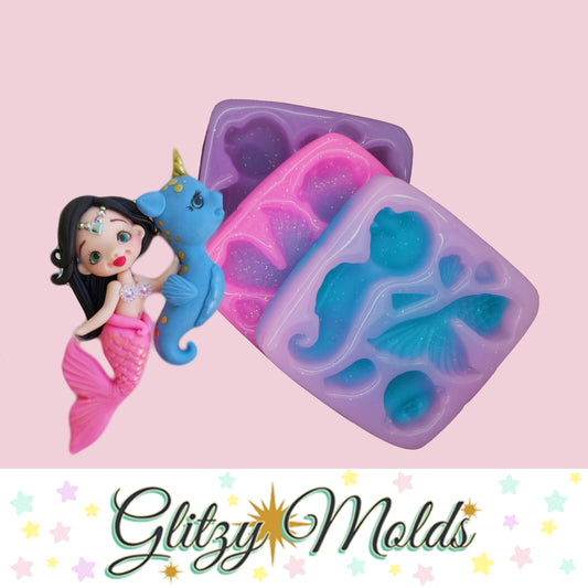 Mermaid and Seahorse Applique Silicone Mold TS-88