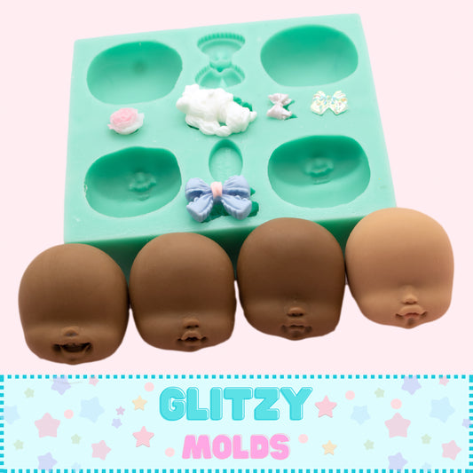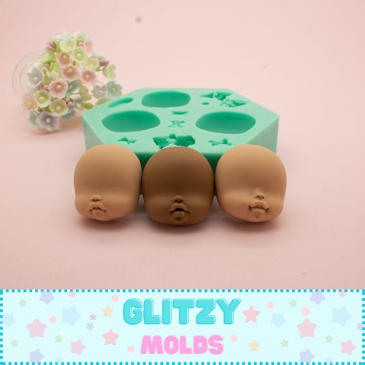 Doll Face Mold, 3 Sweet Faces, Silicone Mold by Yuya's by Brenda Muñiz YBM-5-17