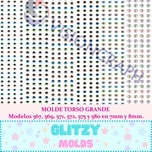 3D Eye Decals, Fit for Large Torso Mold, Style # 567, 569, 571, 572, 575 and 580 sizes 7mm y 8mm., 11X17 INCHES SHEET