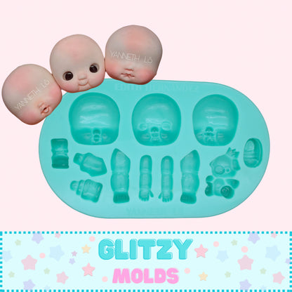 Molde de silicona con temática de Baby Doll. Este molde es de Edith Hernández en colaboración con Yanneth LS, una de las artistas de porcelana fría más talentosas de México.