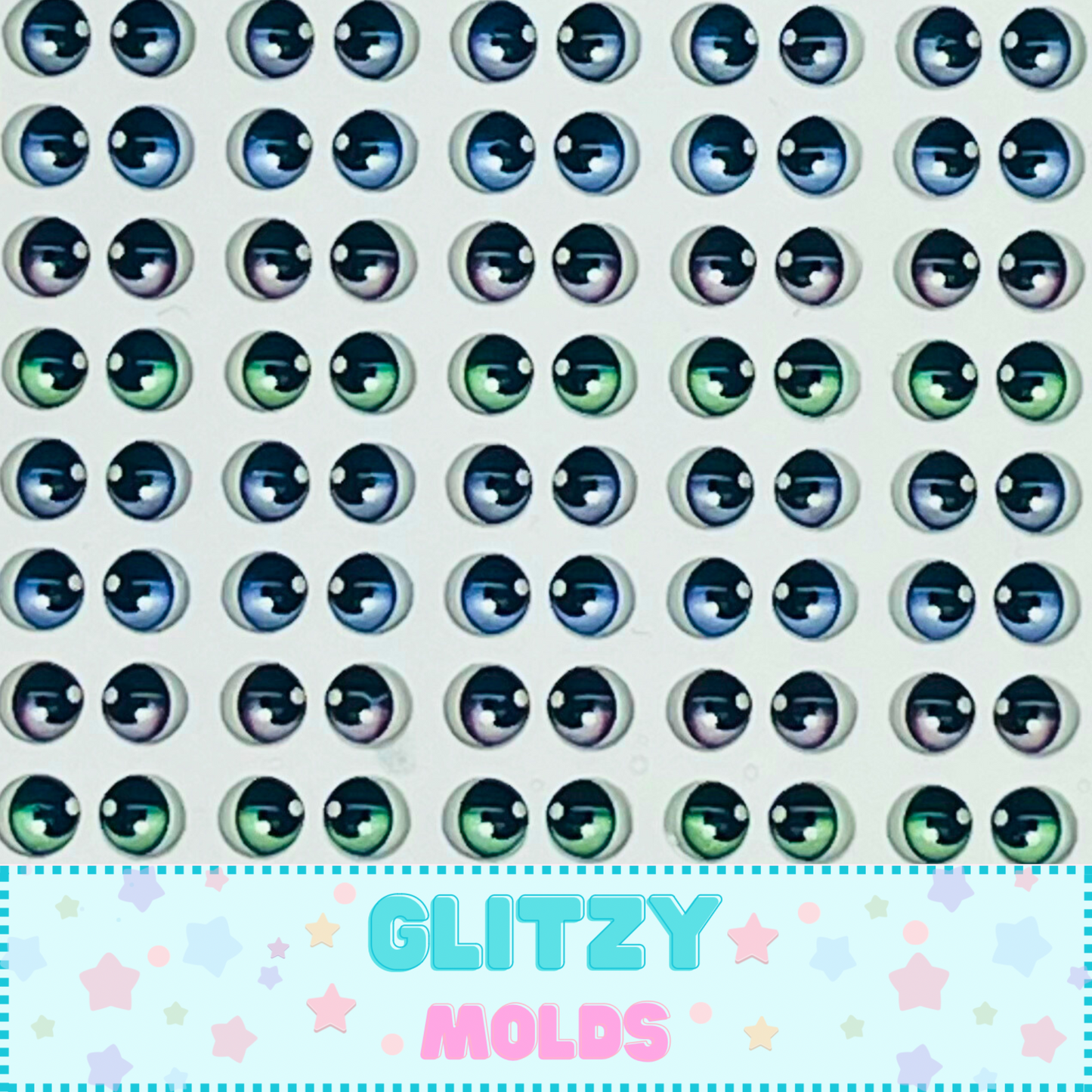 Set of 3D resin domed eye stickers. These eyes are self adhesive. Great for cold porcelain doll appliques.