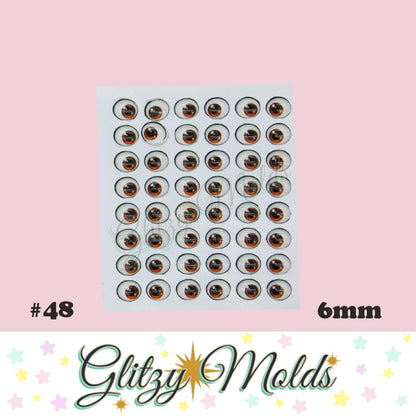 3D Eye Stickers, 6mm 3D Resin Eyes, Ojos Resinados, Ojitos Auto adheribles GM-48