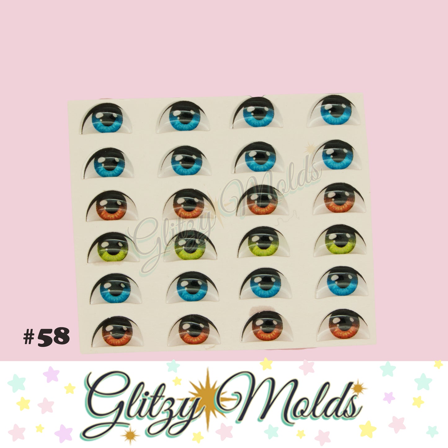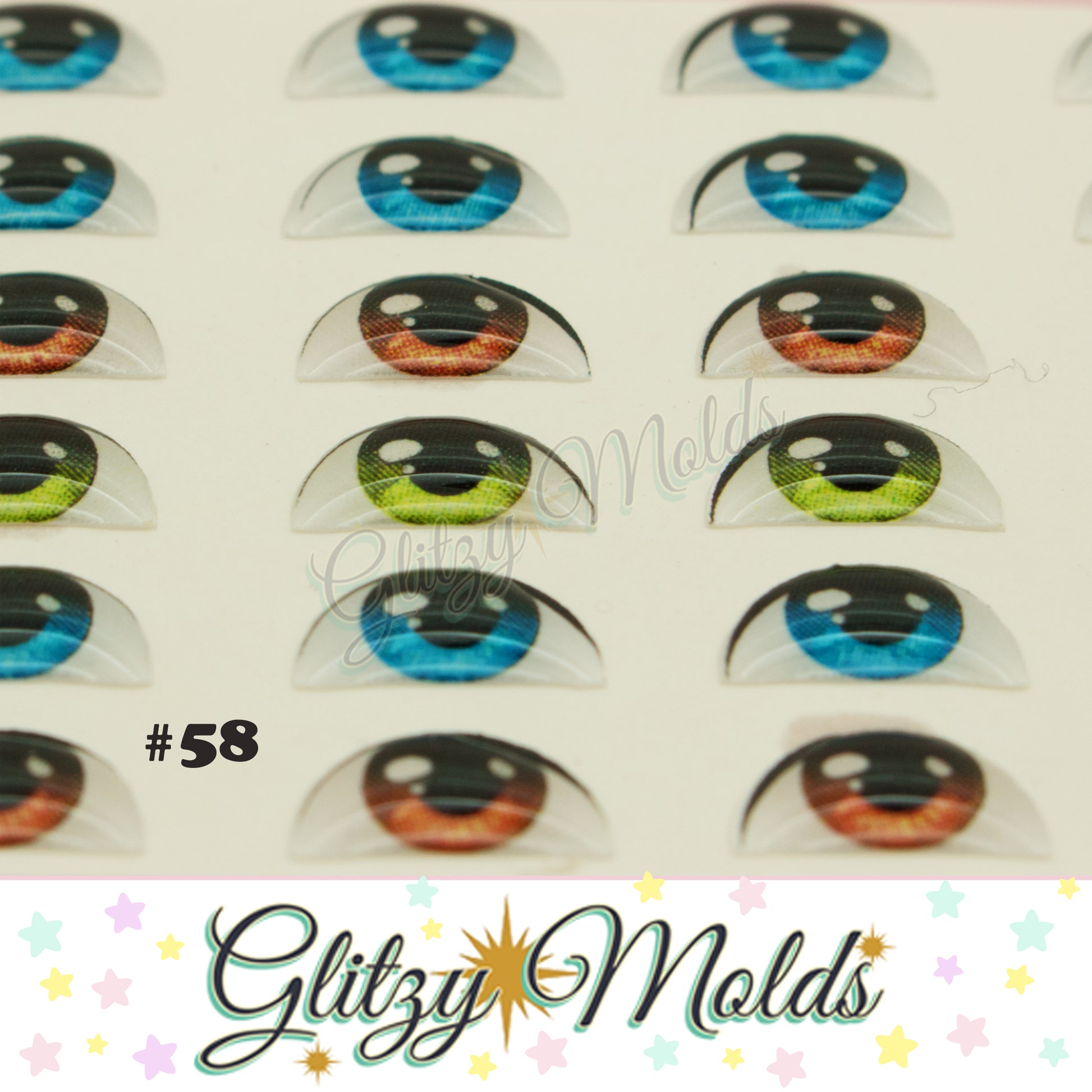 Set of 3D resin domed eye stickers. These eyes are self adhesive. Great for cold porcelain doll appliques.