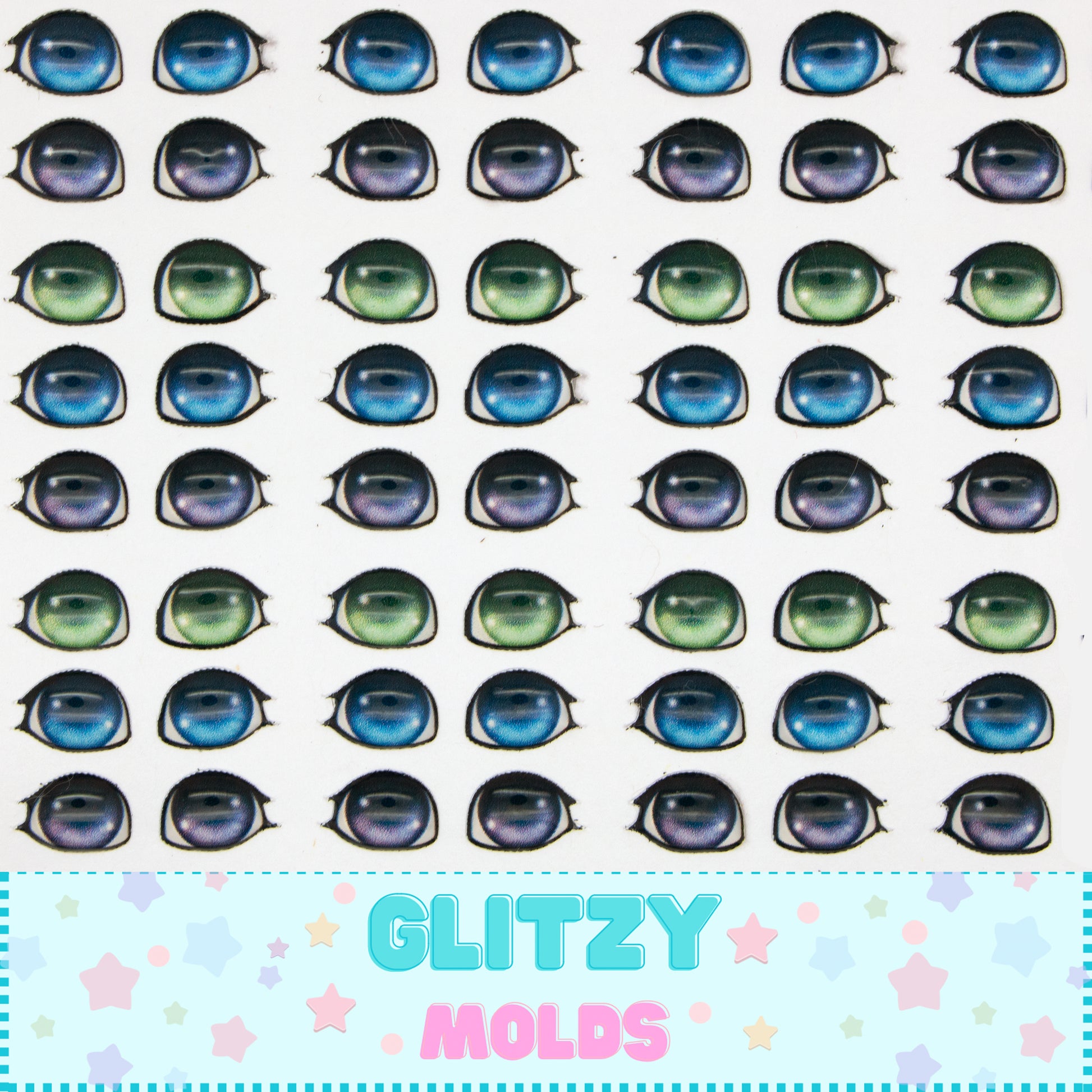 Set of 3D resin domed eye stickers. These eyes are self adhesive. Great for cold porcelain doll appliques.