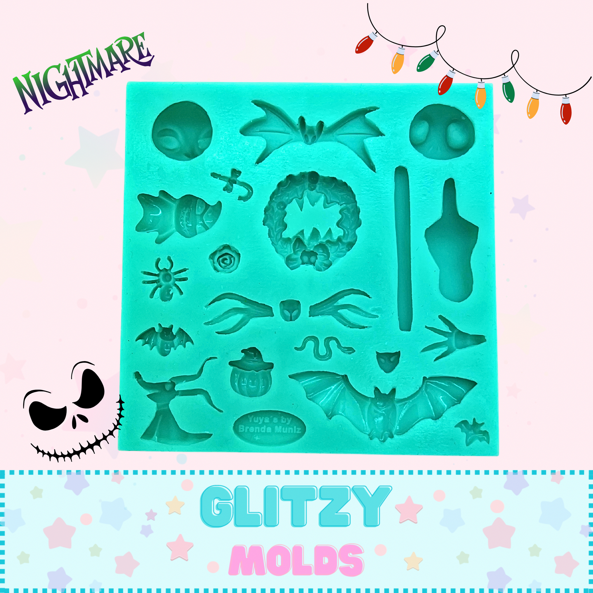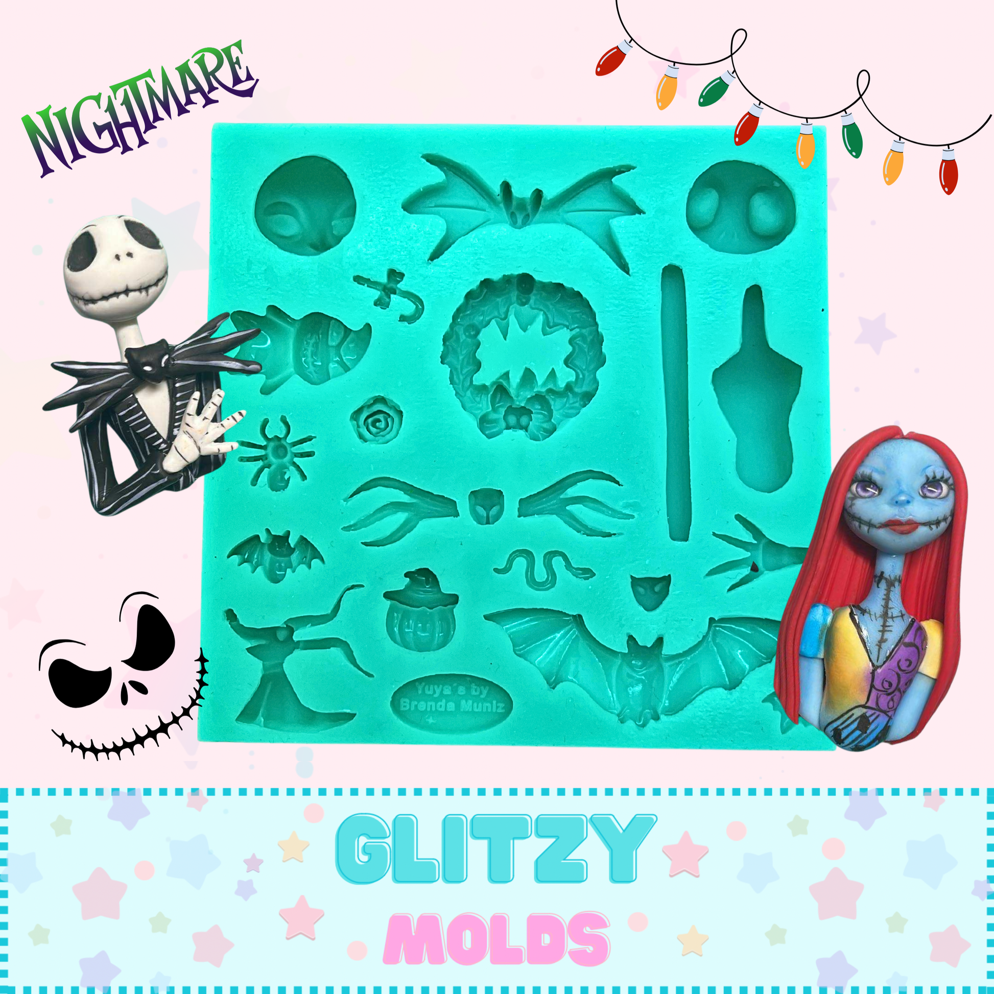 Adorable Jack and Sally inspired silicone mold. Mold is a collaboration with the very talented Brenda Muñiz from Yuya's by Brenda Muñiz and Glitzy Molds. This is a perfect mold to create pieces for hair bows, pens and jewelry!