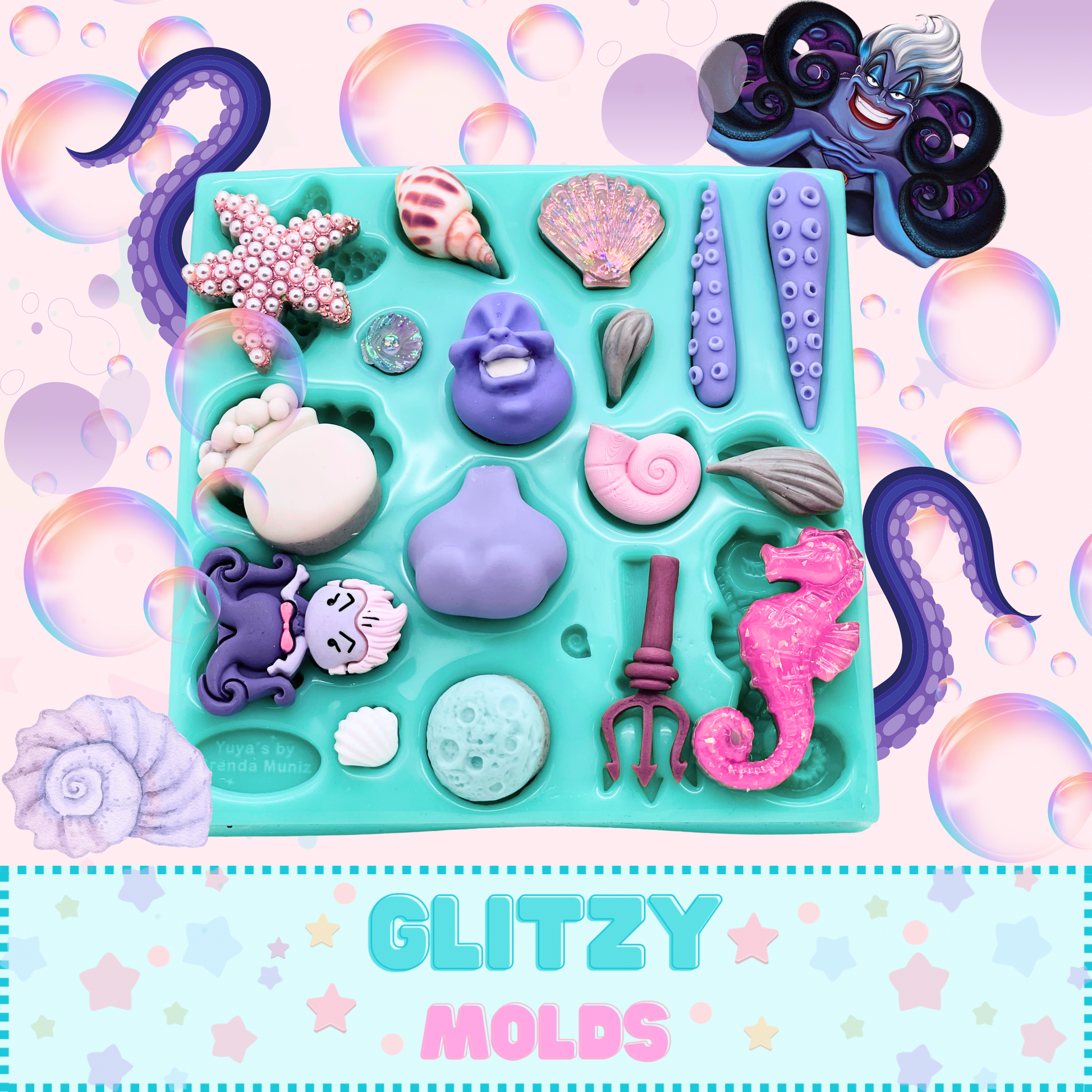 Adorable mini Ursula inspired silicone mold. Mold is a collaboration with the very talented Brenda Muñiz from Yuya's by Brenda Muñiz and Glitzy Molds. This is a perfect mold for hair bows, pens and jewelry!