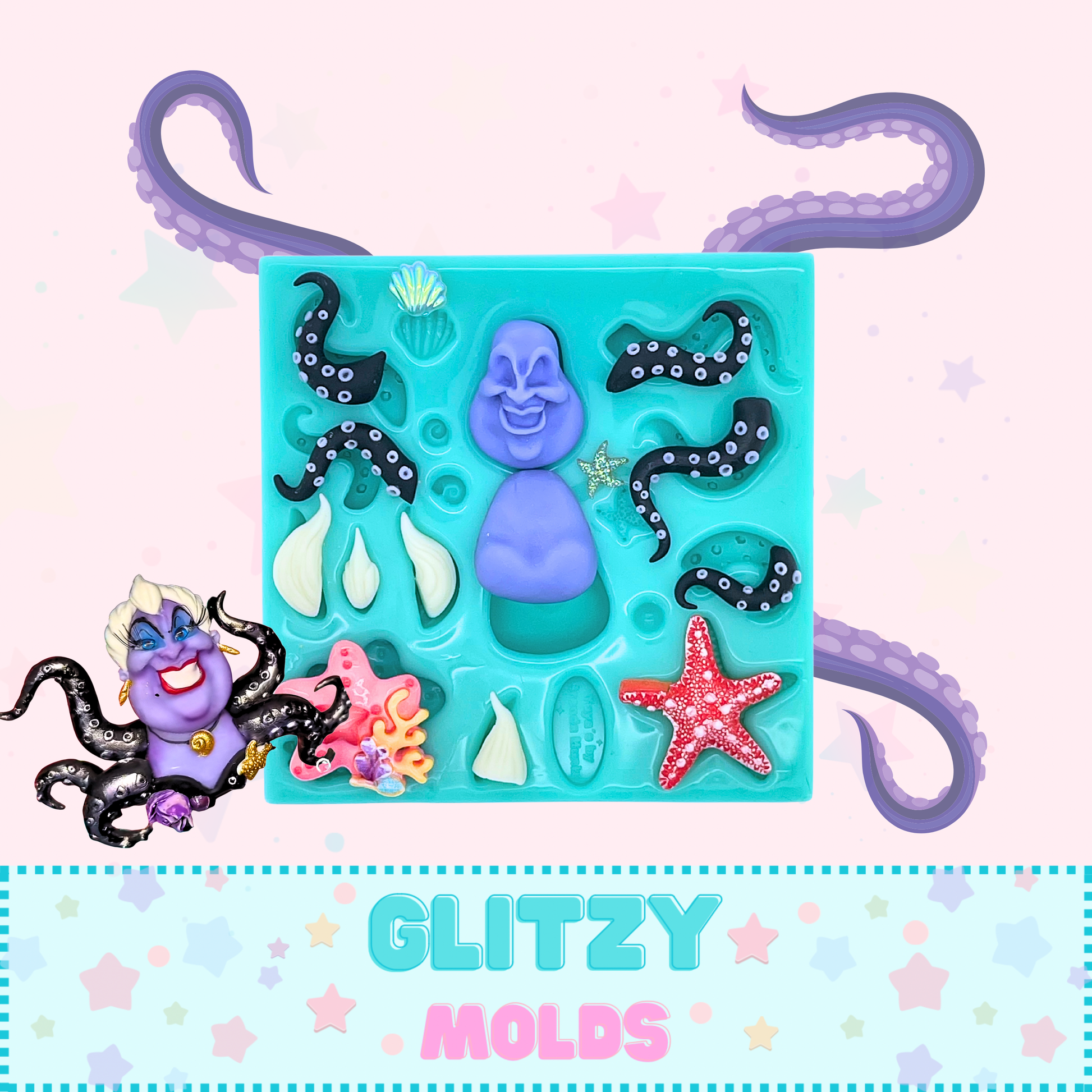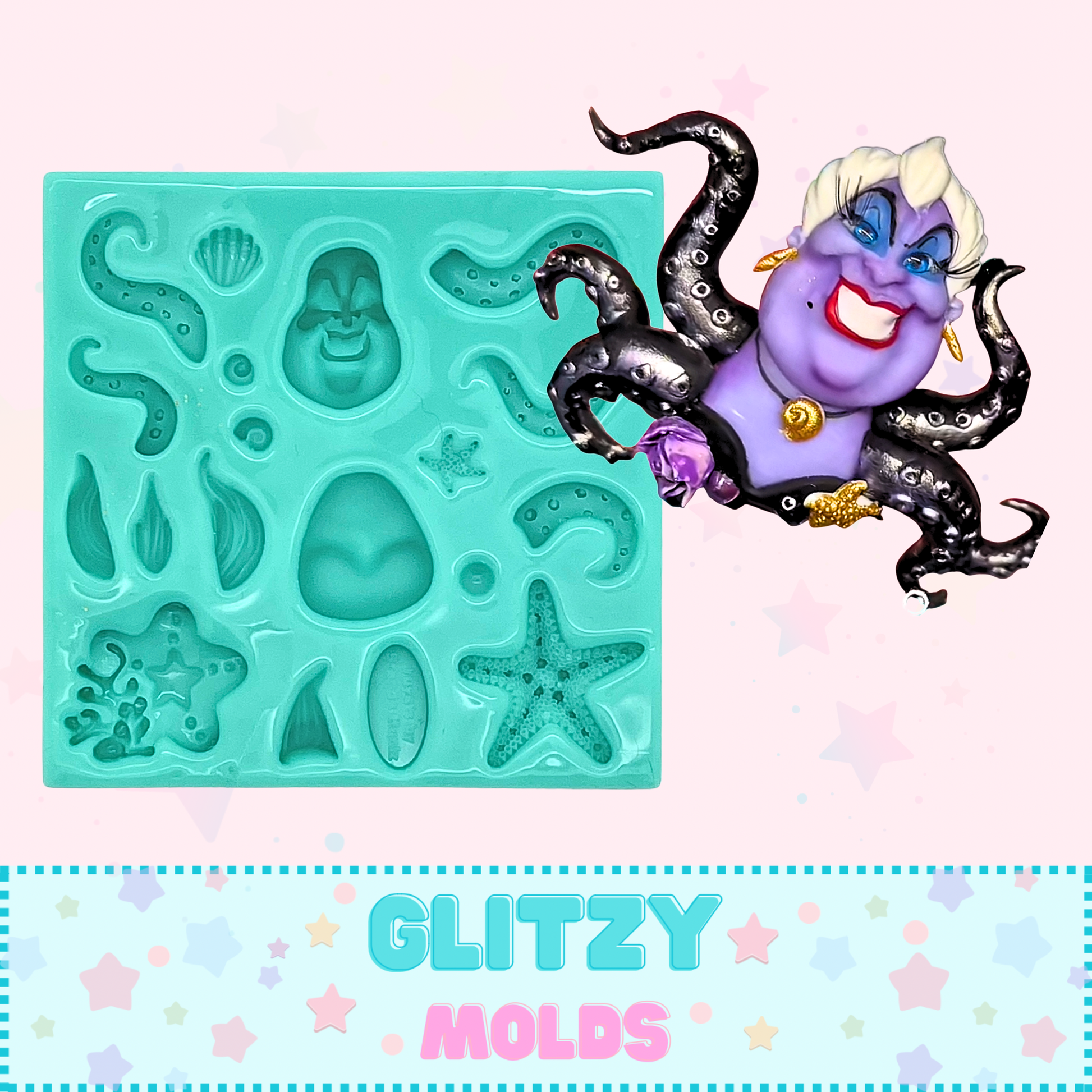 Adorable Ursula inspired silicone mold. Mold is a collaboration with the very talented Brenda Muñiz from Yuya's by Brenda Muñiz and Glitzy Molds. This is a perfect mold for hair bows, pens and jewelry!